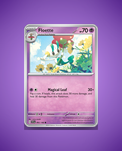 In the vibrant world of Scarlet Violet, prepare to meet Floette, a common find among collectors with an impressive HP of 70. This enchanting Pokémon wields the attack Magical Leaf, making it a must-have for any strategy-focused trainer.