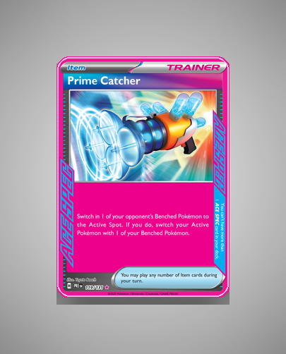 - Prismatic Evolutions: Features Prime Catcher as a strategic ACE SPEC Item with a switch-focused effect, prized for tactical utility and collectible rarity within the set.
