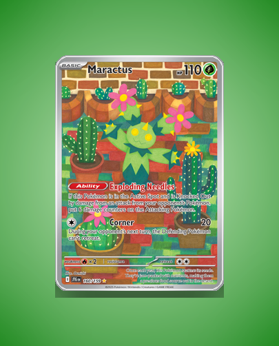 - Journey Together (sv9): Maractus appears as a Basic Grass-type with a strategic ability and a control-oriented attack. This set introduces it as a flavorful desert-themed Pokémon with a unique niche in gameplay and collection.