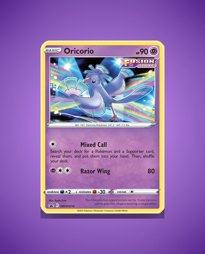 • Flavor Text: “This Oricorio has sipped purple nectar. Some dancers use its graceful, elegant dancing as inspiration.”