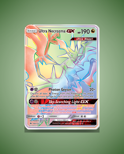 - It features the Pokémon-GX rule, where the opponent takes 2 Prize cards if Ultra Necrozma-GX is knocked out.