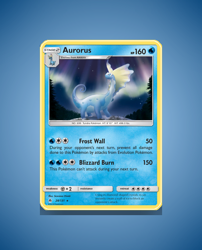 • Blizzard Burn: Deals 150 damage; Aurorus can’t attack during your next turn.