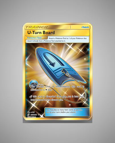 - Unified Minds (sm11): The sole set featuring U-Turn Board, this expansion introduced a variety of powerful Pokémon Tools, with U-Turn Board standing out as a rare secret card that offers strategic retreat cost reduction and tool attachment flexibility.