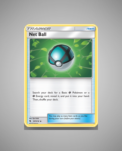 • Lost Thunder (sm8): Net Ball debuts as a useful Item supporting Grass-type decks by facilitating searches for Basic Grass Pokémon or Grass Energy. It complements the set’s strategy without any direct attacks or abilities.