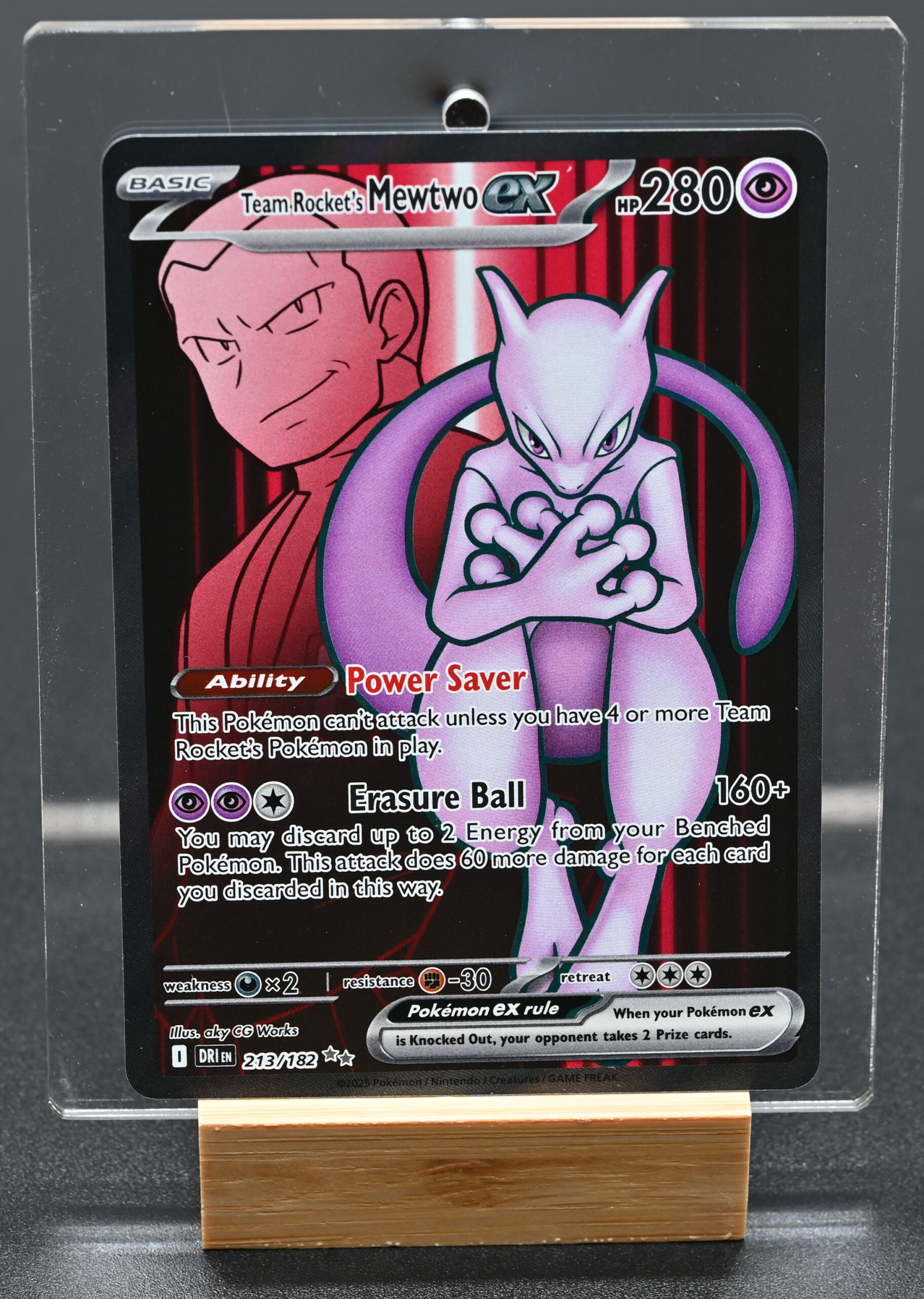 Destined Rivals introduced some of the most compelling Full Arts in the modern Pokémon TCG — but few captured collectors’ attention like Team Rocket’s Mewtwo EX 213/182. By revisiting the concept of a Rocket-controlled Mewtwo, this card blends nostalgia, story, and modern premium artwork into a single unforgettable Ultra Rare.