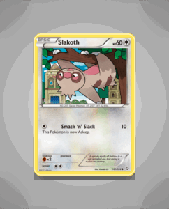 Slakoth from the Dragons Exalted set is a Common Pokémon card numbered 101. It has 60 HP and features the attack Smack ‘n’ Slack. This laid-back character offers a straightforward addition to any collection.