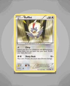 Rufflet from the Dragons Exalted set is a common card with 50 HP. This lively Pokémon features the attack Sharp Beak. It is numbered 111 in the set.