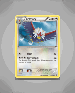 Braviary from the Dragons Exalted set is a Rare card numbered 112. It boasts a solid 100 HP and features the dynamic attack Fury Attack. This card offers a balanced blend of strength and resilience for any collection.
