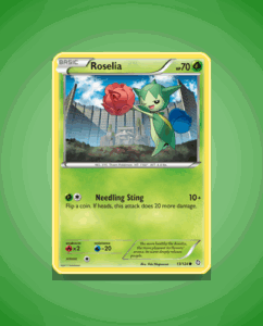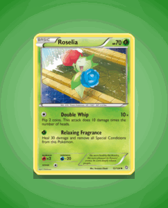 Roselia from the Dragons Exalted set is an uncommon card numbered 12. It features 70 HP and a single attack called Double Whip. This vibrant card offers a straightforward addition to any collection.