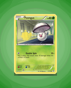 Foongus is a Common Pokémon card from the Dragons Exalted set, numbered 17. It has 40 HP and features the attack Double Spin. This modest card offers a straightforward addition to any collection.