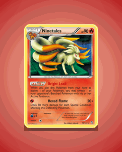 Ninetales from the Dragons Exalted set is a Rare Holo card featuring 90 HP. This elegant Pokémon boasts the ability Bright Look and the attack Hexed Flame. Its striking design and balanced stats make it a notable addition to any collection.