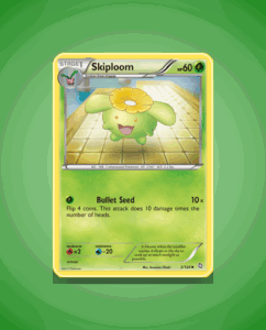 Skiploom is an uncommon Pokémon from the Dragons Exalted set, marked as card number 2. It has 60 HP and features the attack Bullet Seed. This card offers a straightforward addition to any collection focused on balanced, early-stage Pokémon.