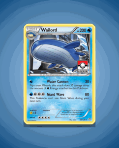 Wailord from the Dragons Exalted set is a Rare Holo card numbered 26. This imposing Pokémon boasts a hefty 200 HP, making it a durable presence in battle. Its signature attack, Giant Wave, reflects its massive aquatic power.