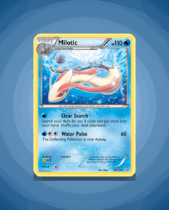 Milotic is a Rare Holo card from the Dragons Exalted set, numbered 28. This sleek Pokémon boasts 110 HP and features the vibrant Water Pulse attack. Its elegant design captures the essence of its aquatic nature.