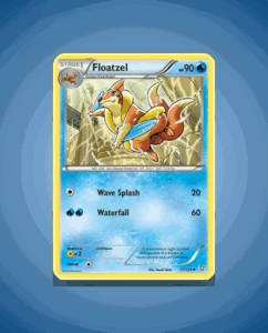 Floatzel from the Dragons Exalted set is an uncommon card numbered 33. This lively Pokémon boasts 90 HP and features the attack Waterfall. Its design captures Floatzel’s swift, aquatic nature.