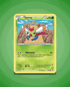Yanma from the Dragons Exalted set is a common card numbered 4 with 70 HP. This lively Pokémon features the attack Whirlwind, adding dynamic play potential. Its straightforward design makes it a staple for collectors seeking balance in their decks.