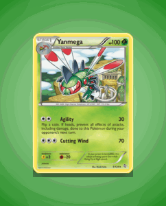 Yanmega from the Dragons Exalted set is a rare card numbered 5. It boasts a vibrant 100 HP, making it a sturdy addition to any deck. Its sole attack, Cutting Wind, showcases its swift and precise battling style.