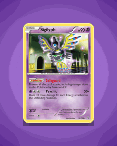 Sigilyph from the Dragons Exalted set is a Rare Holo card featuring 90 HP. It boasts the unique Safeguard ability and a powerful Psychic attack. This vibrant card is numbered 52 in the set.