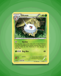 Silcoon from the Dragons Exalted set is an uncommon Pokémon card numbered 7. It has a sturdy 80 HP and features the attack Bug Bite. This card offers a straightforward yet engaging addition to any collection.