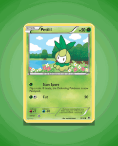Petilil from the Emerging Powers set is a common card numbered 13 with 50 HP. This charming Pokémon features a single attack called Cut. Its straightforward design makes it a simple addition to any collection.