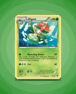 Lilligant from the Emerging Powers set is a sleek Uncommon card numbered 14. It boasts 90 HP and features the attack Cut. This card offers a straightforward addition to any collection.