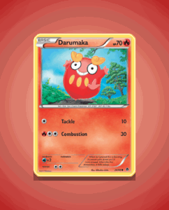 Darumaka from the Emerging Powers set is a common card numbered 20. It has 70 HP and features the attack Combustion. This lively Pokémon brings straightforward energy to any deck.