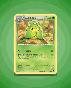 Swadloon is an uncommon Pokémon card from the Emerging Powers set, numbered 5. It has 80 HP and features the attack Double Razor Leaf. This card offers a straightforward yet engaging option for collectors and players alike.