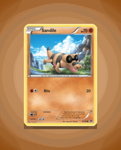 Sandile from the Emerging Powers set is a common card numbered 60 with 70 HP. This lively Pokémon features the straightforward attack Bite, making it a simple yet effective choice in battle. Its design captures the essence of a cunning desert dweller.