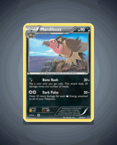 Mandibuzz from the Emerging Powers set is a rare card numbered 69. It boasts 90 HP and features the attack Bone Rush. This card offers a solid addition for collectors seeking a distinctive Pokémon.