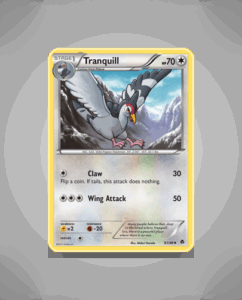 Tranquill from the Emerging Powers set is an uncommon Pokémon card with 70 HP. It features the dynamic Wing Attack, adding a straightforward offensive option. This card is numbered 81 in the set, making it a neat addition for collectors.