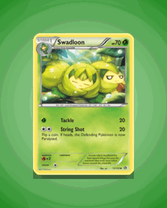 Swadloon from the Legendary Treasures set is an uncommon card numbered 11. It has 70 HP and features the straightforward attack Tackle. This card offers a simple yet charming addition to any collection.
