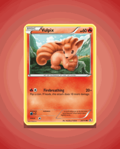 Vulpix from the Legendary Treasures set is a common Pokémon card numbered 20. It features 60 HP and a single attack called Firebreathing. This charming card captures Vulpix’s fiery essence with straightforward gameplay potential.
