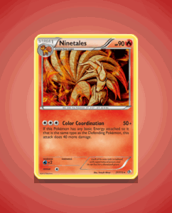 Ninetales from the Legendary Treasures set is a rare card numbered 21 with 90 HP. It features the distinctive attack Color Coordination, showcasing its strategic potential. This elegant Pokémon adds a unique flair to any collection.