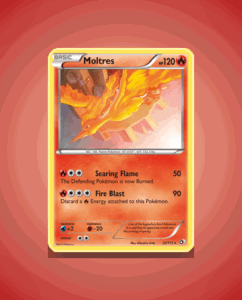 Moltres from the Legendary Treasures set is a Rare Holo card numbered 22. This vibrant card features 120 HP and a powerful Fire Blast attack. Its striking design captures the fiery essence of this iconic Pokémon.