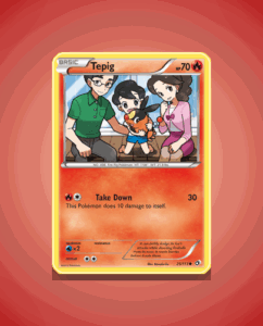 Tepig from the Legendary Treasures set is a common card numbered 25. It features 70 HP and a straightforward attack called Take Down. This lively Fire-type Pokémon offers a solid presence for collectors seeking classic, accessible cards.