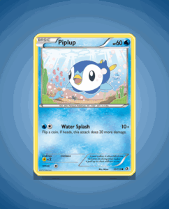 Piplup from the Legendary Treasures set is a charming Common card numbered 33. It has 60 HP and features the simple attack Water Splash. This card offers a straightforward addition for collectors seeking classic Pokémon.