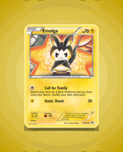 Emolga from the Legendary Treasures set is an uncommon card with 70 HP. It features the striking attack Static Shock, adding a dynamic element to gameplay. This card is numbered 49 in the set, making it a distinctive addition for collectors.