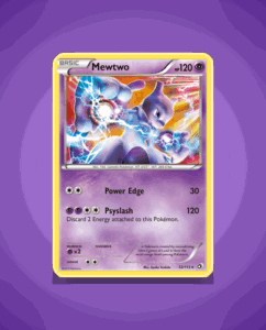 Mewtwo from the Legendary Treasures set is a Rare Holo card numbered 53. It boasts 120 HP and features the striking attack Psyslash. This card’s vibrant design makes it a standout addition for collectors.