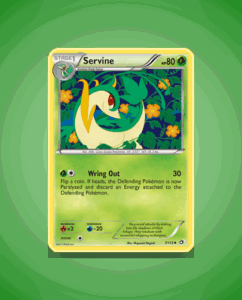 Servine from the Legendary Treasures set is an uncommon card with 80 HP. It features the attack Wring Out, showcasing its strategic potential in battle. This sleek card holds a solid place as number 7 in the set.
