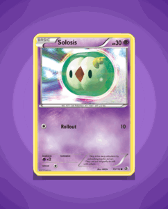 Solosis is a Common Pokémon card from the Legendary Treasures set, numbered 73. It has a modest 30 HP and features the attack Rollout. This card offers a simple yet distinct addition to any collection.