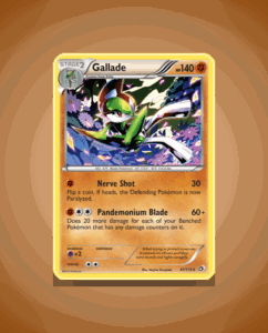 Gallade from the Legendary Treasures set is a Rare card numbered 81, boasting a solid 140 HP. Its attack, Pandemonium Blade, offers a dynamic option in battle. This card combines strength and strategy, making it a notable addition to any collection.