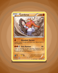 Landorus from the Legendary Treasures set is a Rare Holo card numbered 85. It boasts a solid 110 HP and features the powerful attack Gaia Hammer. This card’s striking design makes it a notable addition to any collection.
