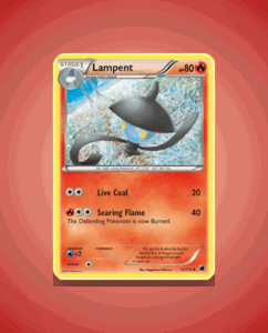Lampent is an uncommon card from the Plasma Freeze set, numbered 15. It has a modest 80 HP and features the attack Searing Flame. This card offers a focused addition to any collection with its distinct design and solid stats.