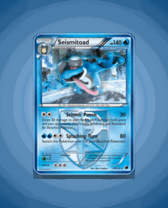 Seismitoad from the Plasma Freeze set is a Rare card numbered 26. It boasts a robust 140 HP, making it a sturdy choice in battle. Its attack, Splashing Turn, adds a dynamic element to gameplay. This card offers collectors a vibrant addition to their collection.
