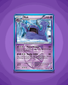 Muk from the Plasma Freeze set is a rare card featuring 100 HP. This slimy Pokémon attacks with Sludge Crash, showcasing its toxic power. Its bold design captures Muk’s distinctive, gooey form.