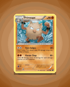 Primeape from the Plasma Freeze set is a common card numbered 60. It features 90 HP and a single attack called Karate Chop. This straightforward design highlights Primeape’s aggressive nature in battle.