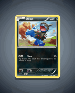 Deino is a Common Pokémon from the Plasma Freeze set, numbered 75. It has 60 HP and features the straightforward attack Bite. This card offers a simple yet engaging addition to any collection.