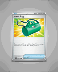 Hop’s Bag is an uncommon Trainer card from the Journey Together set, numbered 147. This practical card is designed to support your gameplay with useful effects. Its straightforward design makes it a reliable addition to many decks.