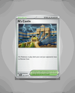 N’s Castle is an uncommon card from the Journey Together set, numbered 152. Its design captures a distinctive aspect of the Pokémon universe. This card is a notable addition for collectors seeking unique set pieces.