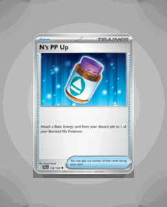 N’s PP Up is an uncommon Trainer card from the Journey Together set, numbered 153. This card offers strategic value for players looking to enhance their gameplay. Its presence in the set adds a practical option for managing move usage during battles.